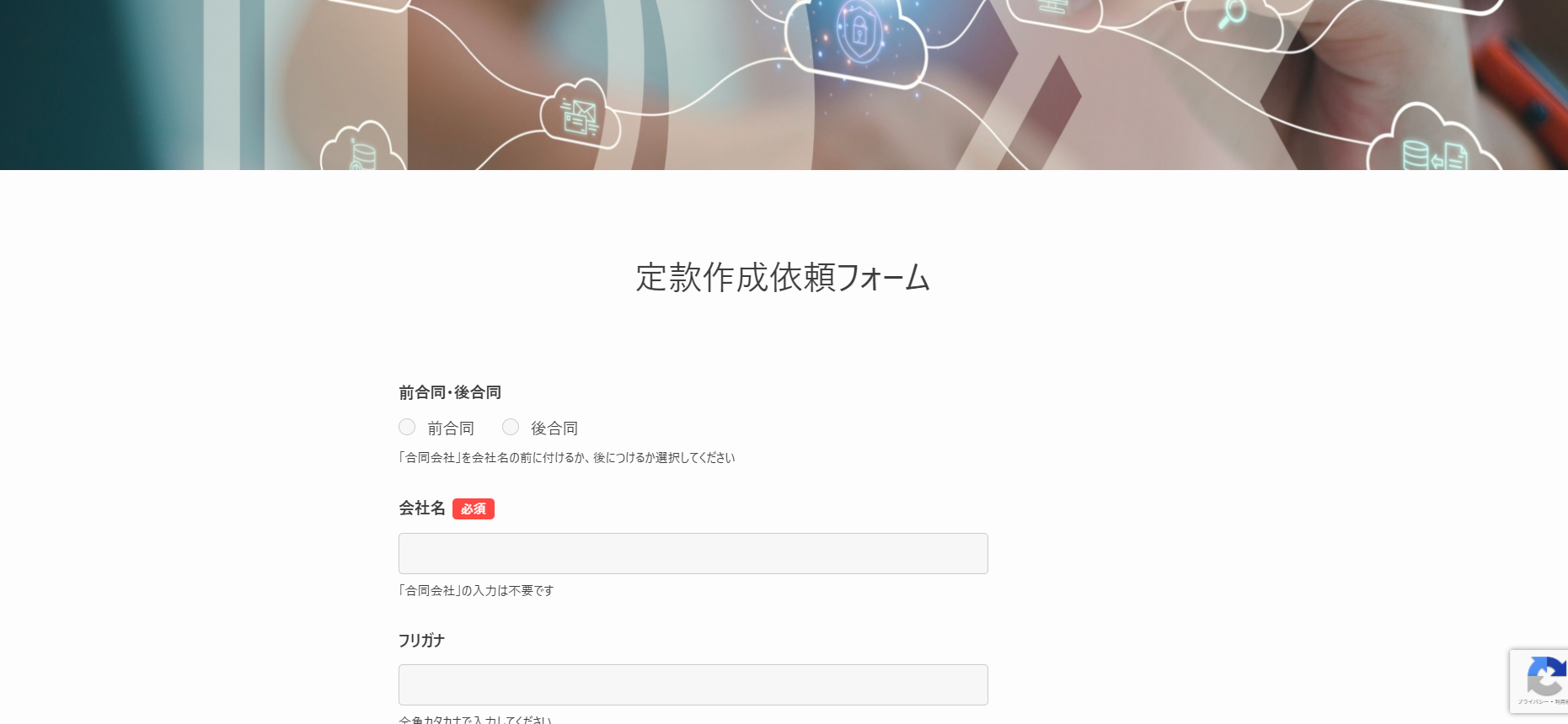 メール記載のURLにアクセスして頂き、定款に必要な情報をご入力ください。